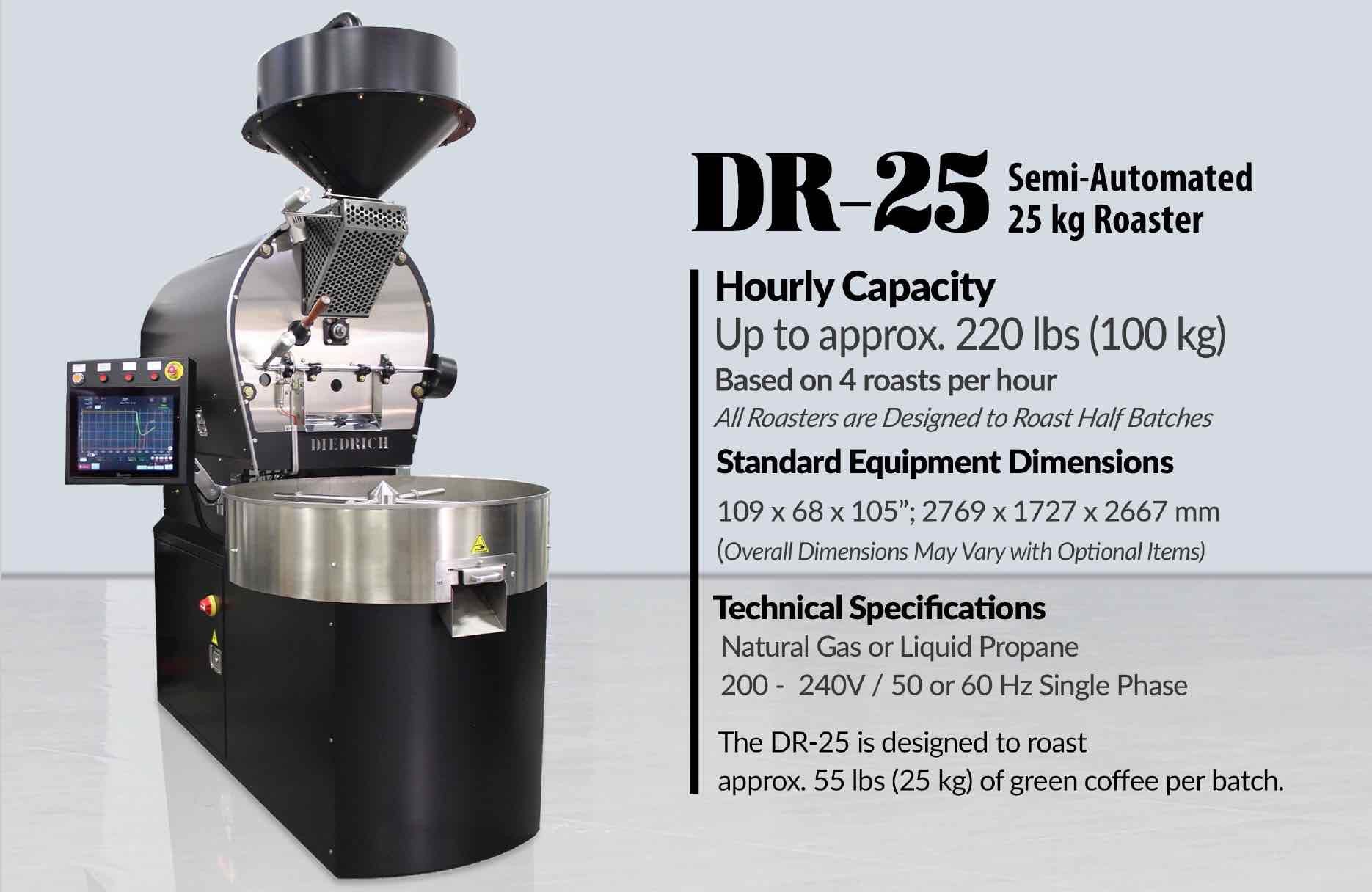 El tamaño del lote para el DR-25 es de aproximadamente 55 lb (25 kg) de café verde
