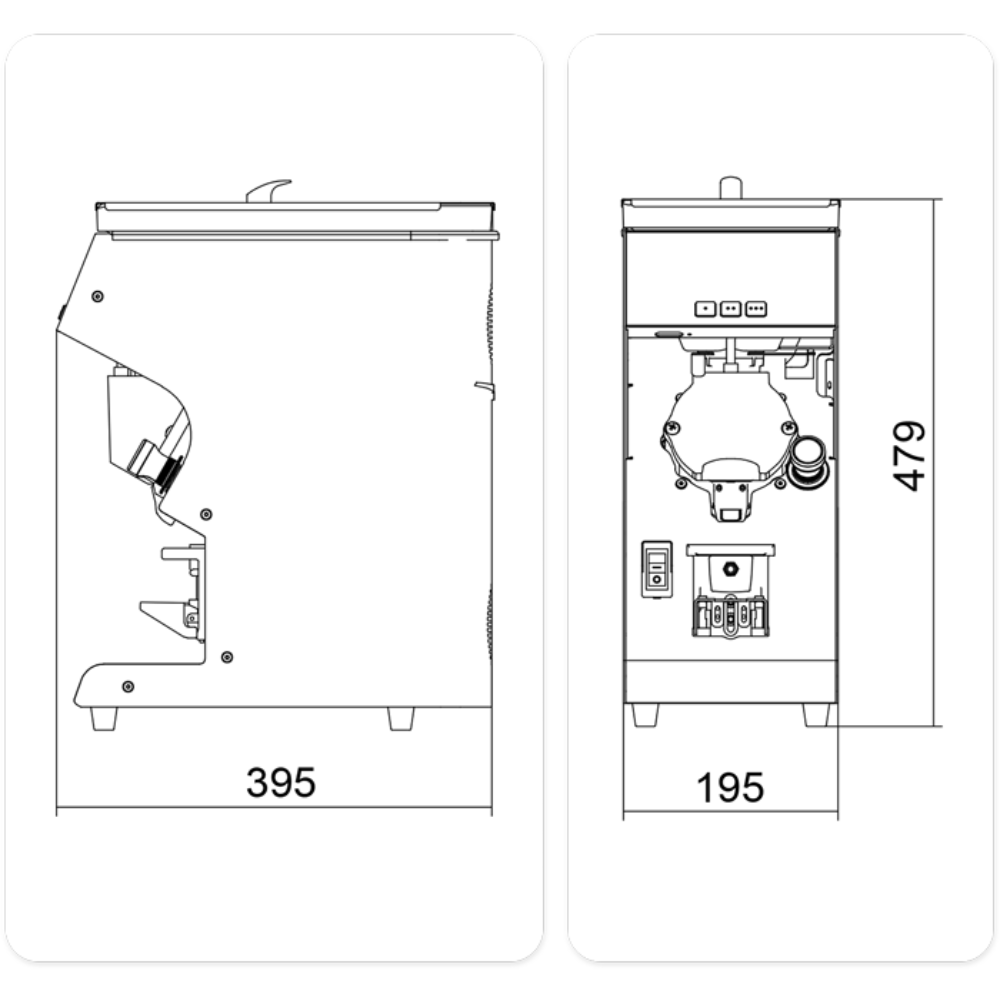 Diseño compacto (ancho 195 mm) para colocar varios molinos lado a lado
